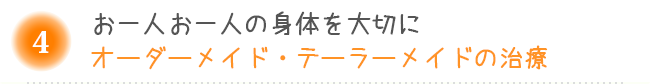 早く治る、再発しない、根本治療をモットーに、一人一人の体質と症状に合わせて、テーラーメイド※の施術を行っております。