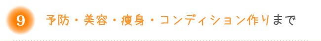 はり灸施術を軸として、整体(骨盤矯正・姿勢矯正)・電気・つぼ押しマッサージ・加圧・運動・食事・養生指導などを組み合わせることで、自然治癒力を最大限活性化し、心と身体のあらゆる不調の改善、治癒に全力を尽くします。