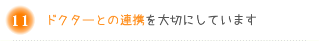 内科・整形外科・産婦人科・耳鼻咽喉科など、多くのドクターと連携していますので、必要な時は適宜診察情報を提供し、ドクターをご紹介いたします。
