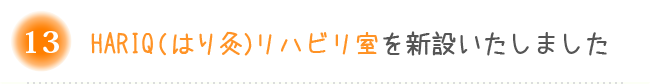 | 平成30年2月 | HariQリハビリ室開設。 |