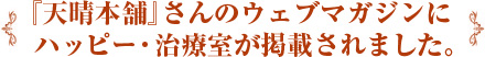 ハッピー・治療室は、福井県で№1の鍼灸整体マッサージ治療を目指し、